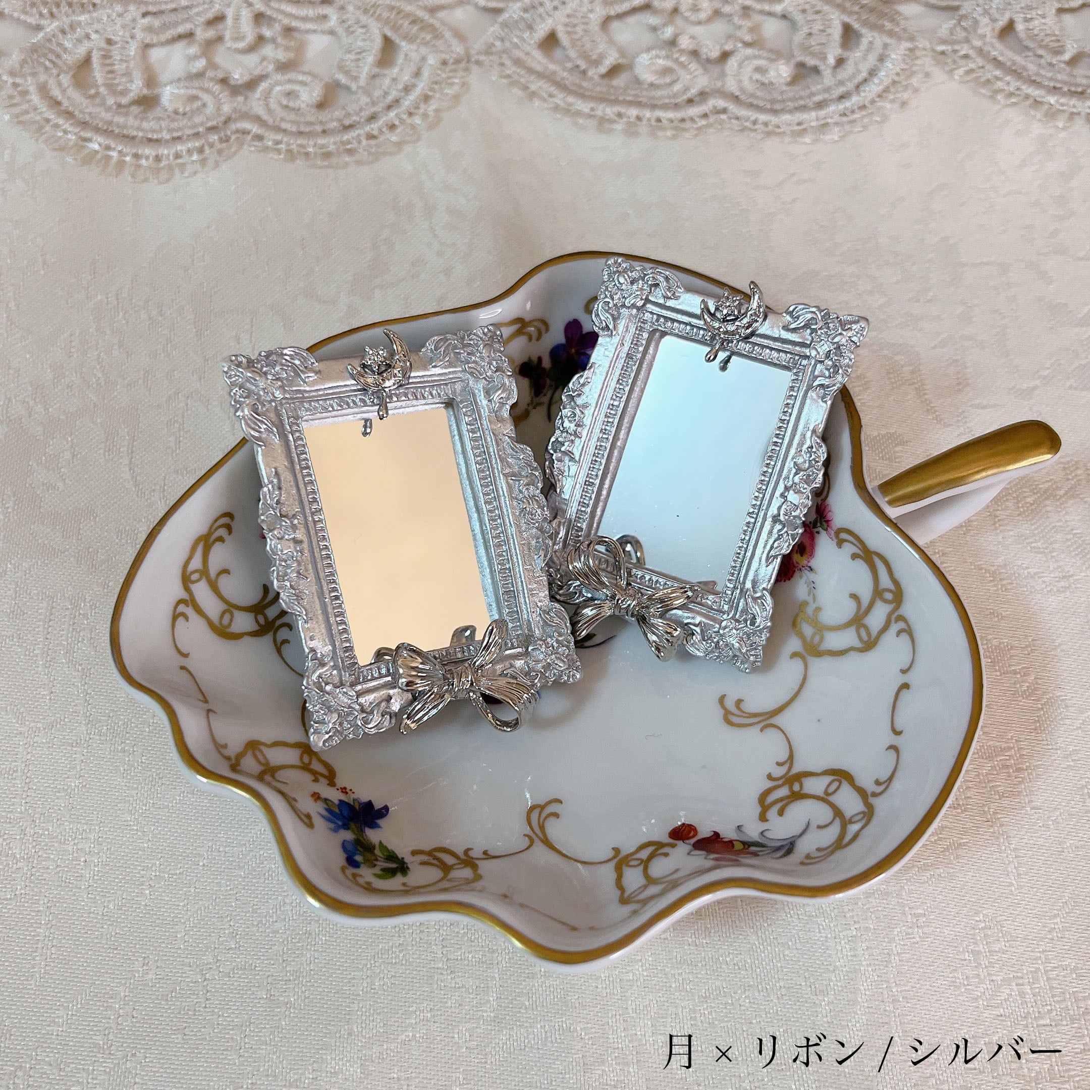 ミニチュア鏡のイヤリングです。