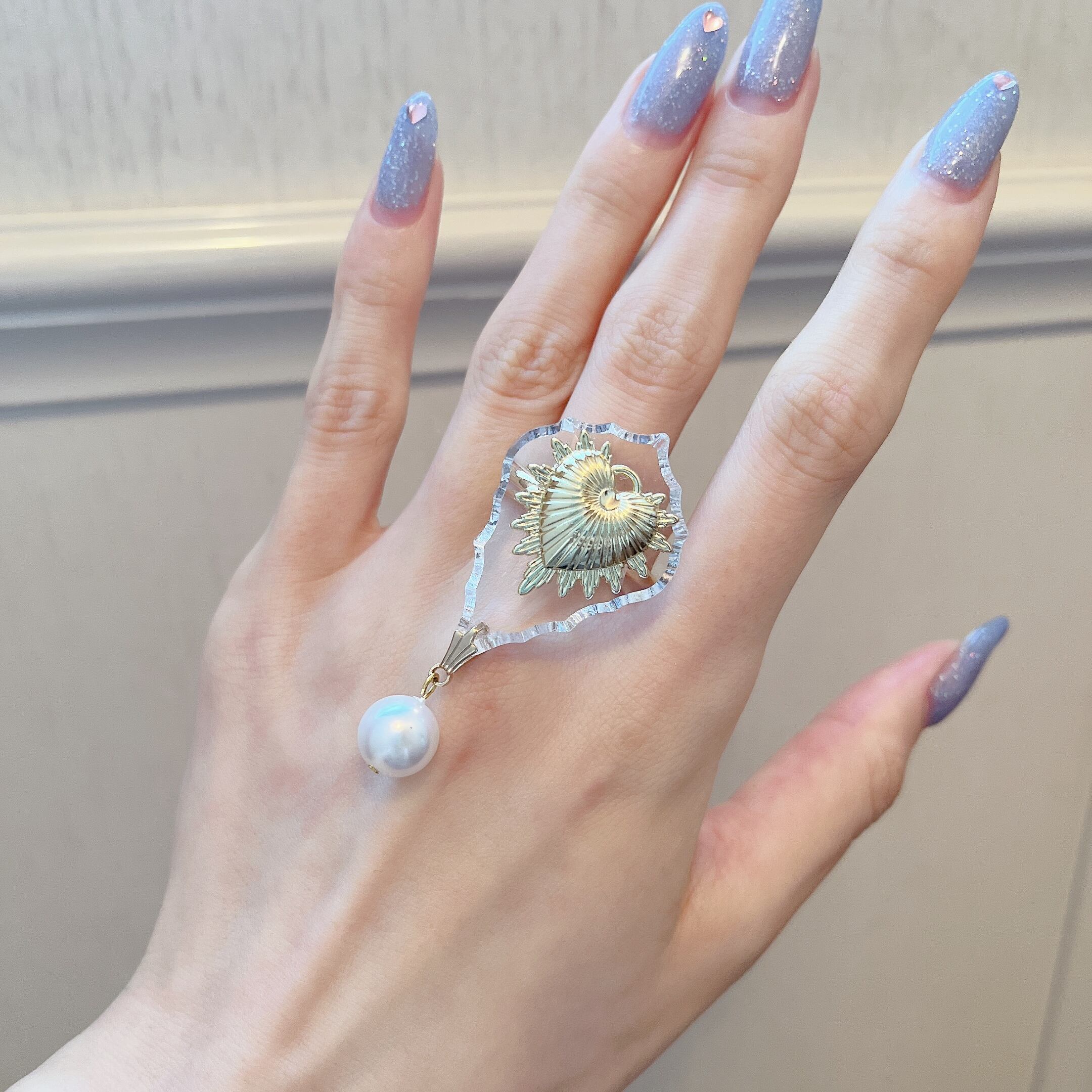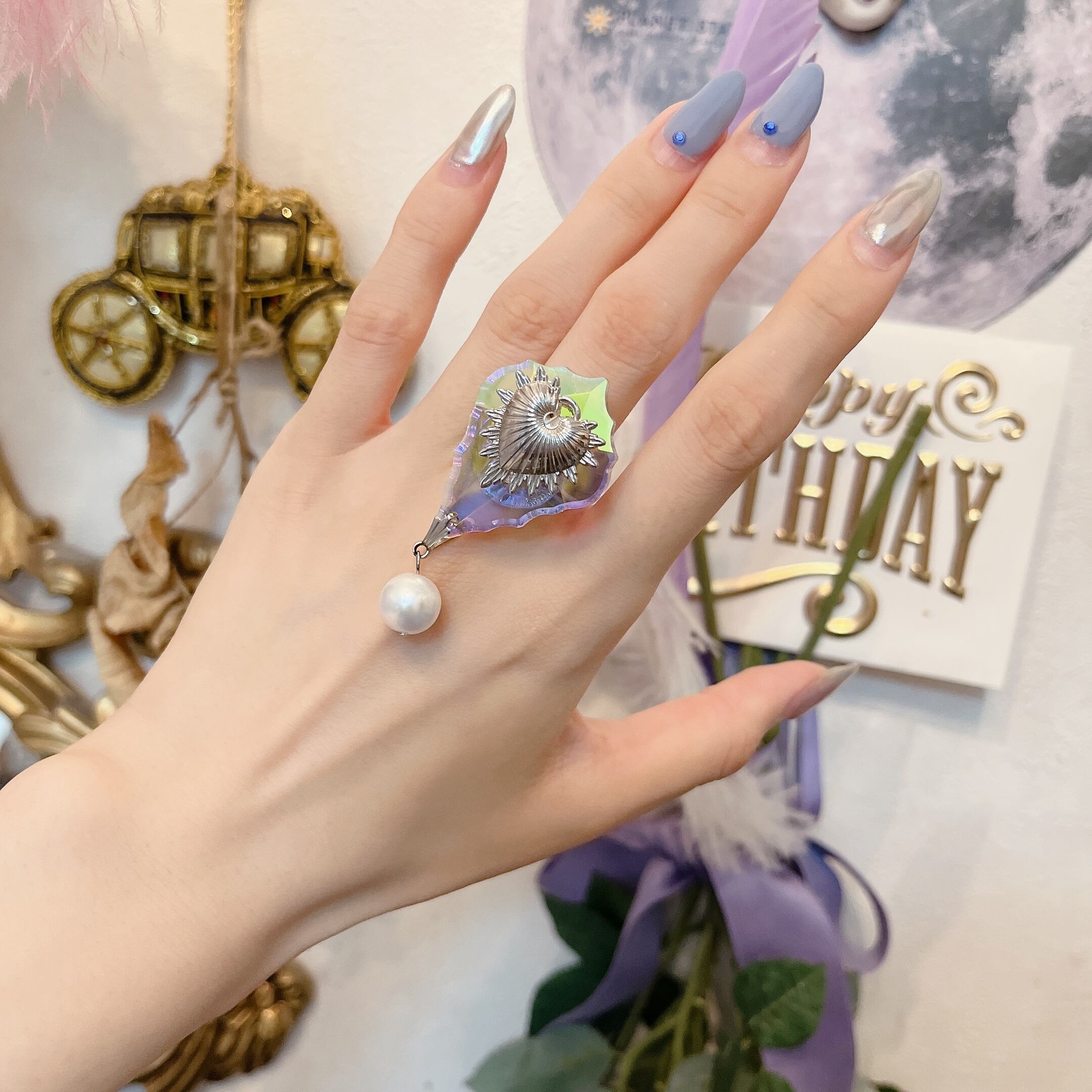 シャンデリアのガラスビーズを使用したラグジュアリー感あるリングです。