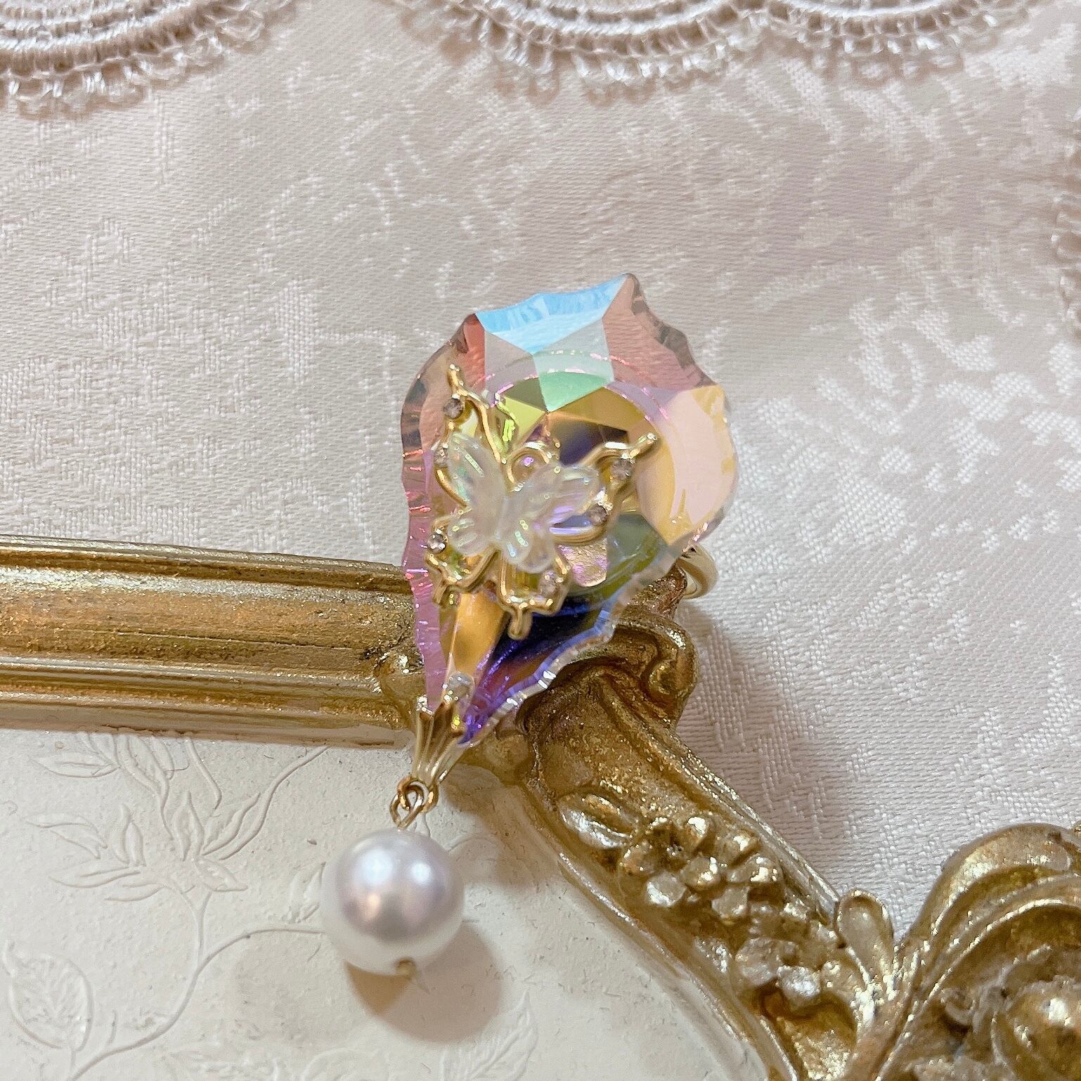 シャンデリアのガラスビーズを使用したラグジュアリー感あるリングです。