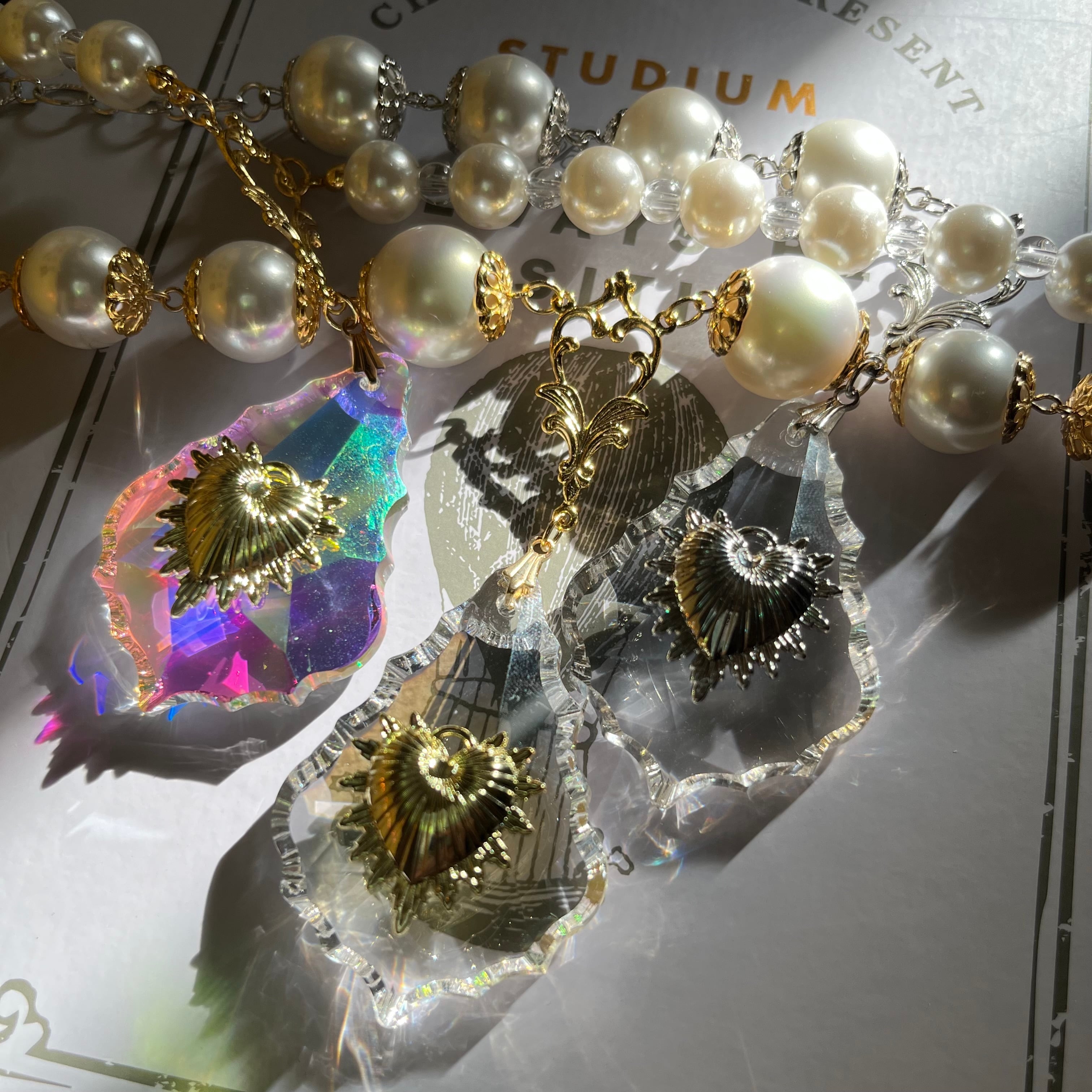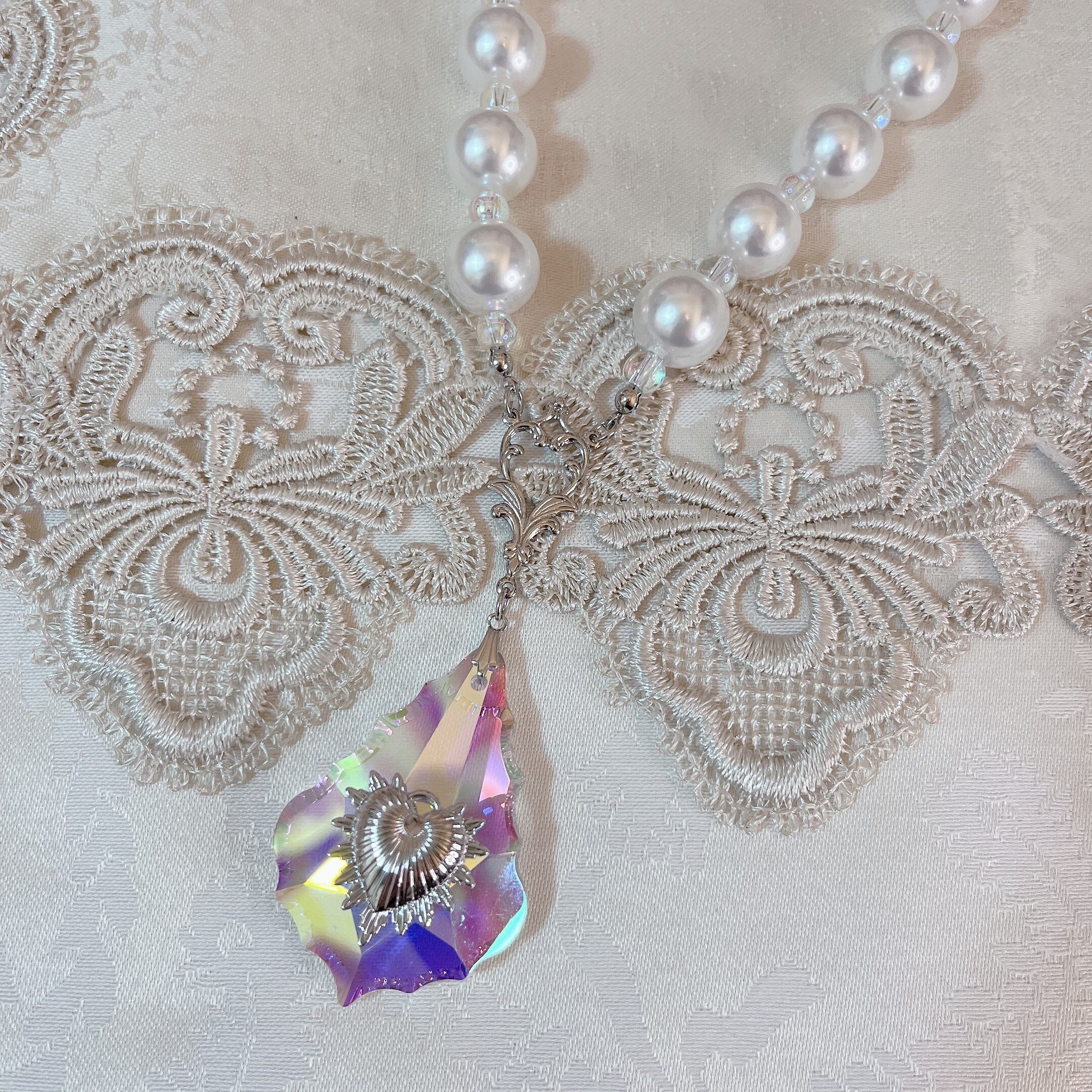 大振りなシャンデリアのガラスビーズを使用したラグジュアリー感あるネックレスです。